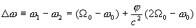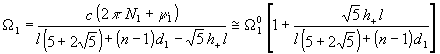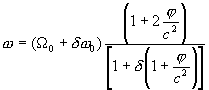 where W0 is the resonator eigenfrequency, w0 is the laser operating medium atomic transition eigenfrequency, independant on gravitational potential, d is stabilization parameter (approximately equal to resonator mode line width / Doppler line width radio). If potential j varies along the resonator axis line, for example, at the vertical arrangement of resonators, then it can be demonstrated that in this case some efficient potential value should be substituted into the given above formula, being numerically equal to the value j in some internal - "middle" - resonator point. Limiting case of small stabilization parameters When d -> 0, what corresponds to the real case of gaseous lasers (d ~ 10-2-10-3), the generation frequency is determined by the resonator eigenmode frequency w0: